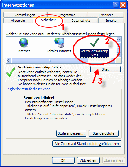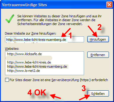 Wenn Sie unsere Webseite des öfteren besuchen und Sie es nervt, dass Ihr Browser jedesmal fragt, ob Sie Skripte oder Active-X-Elemente erlauben wollen, dann schlagen wir folgenden Weg vor: